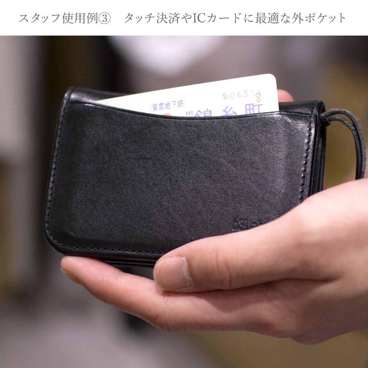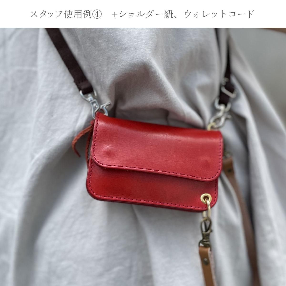 また、その使いやすさから店舗スタッフの使用率No.1! 違う財布も試してみるけど「結局使いやすくてこれに戻って来ちゃうよね」というスタッフ、カラー違いの二代目を使い始めたスタッフ。 工房ではショルダー紐をつけてみたりと、とても愛されているお財布です。