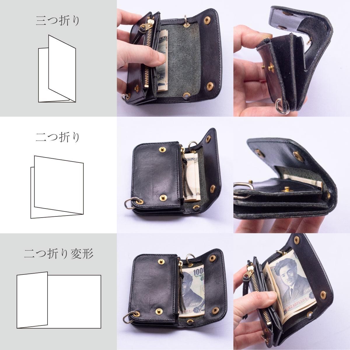 1950年代、アメリカのトラック乗りのお金・領収書入れとして誕生し、1960年代にはバイカーたちに人気が爆発した「トラッカーウォレット」。そのトラッカーウォレットの流れを汲むミニ財布がこちら。