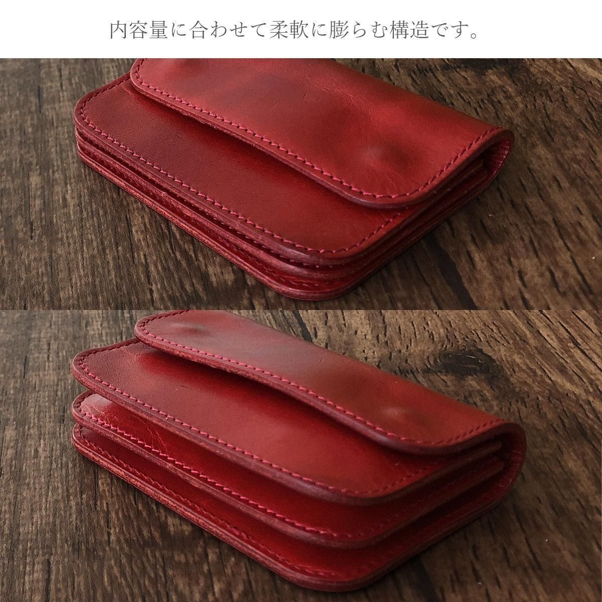 カードサイズ程度の小さな小銭入れには、男性の指は入りにくいのでは、と思われがちですが、適度にオイルを含んだ柔らかな革により、両端を押し込めば左右にむにゅっと大きく開きます。