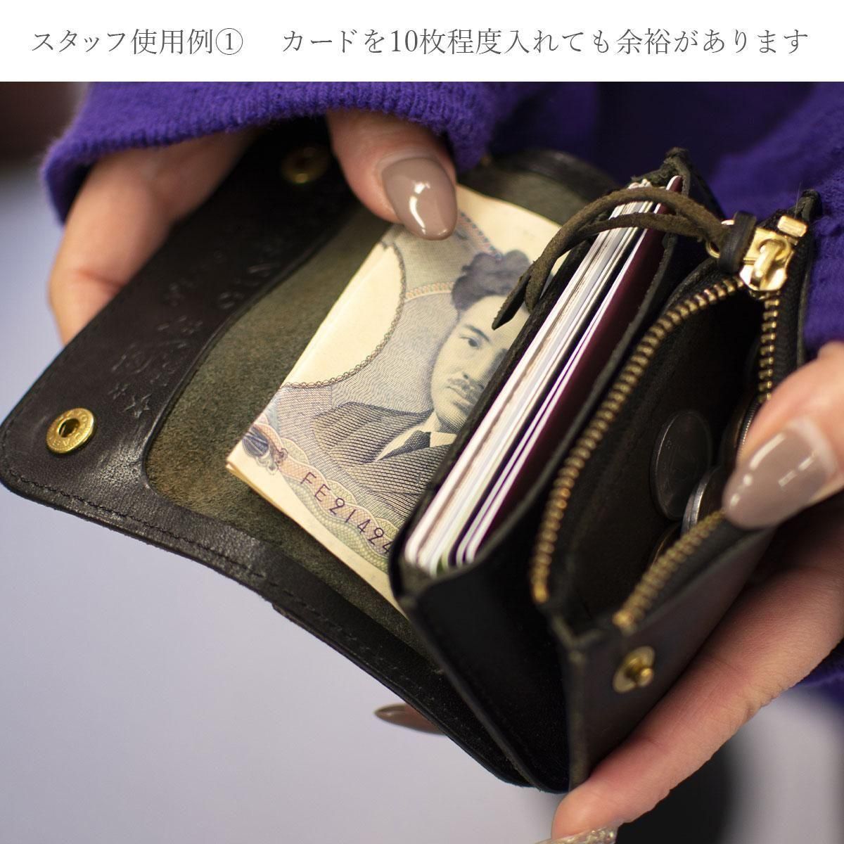 また、その使いやすさから店舗スタッフの使用率No.1! 違う財布も試してみるけど「結局使いやすくてこれに戻って来ちゃうよね」というスタッフ、カラー違いの二代目を使い始めたスタッフ。 工房ではショルダー紐をつけてみたりと、とても愛されているお財布です。