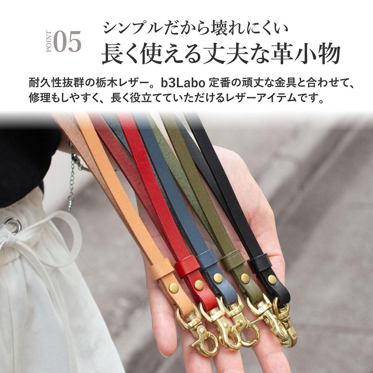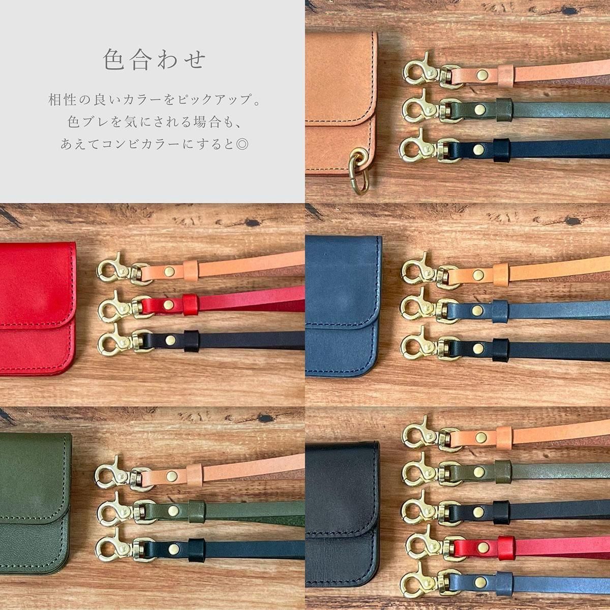 b3Laboの定番カラーで作った1枚革のラッカーウォレット用ストラップ。既存商品と合わせやすく、色を揃えるだけでなくコンビネーションも楽しめます。