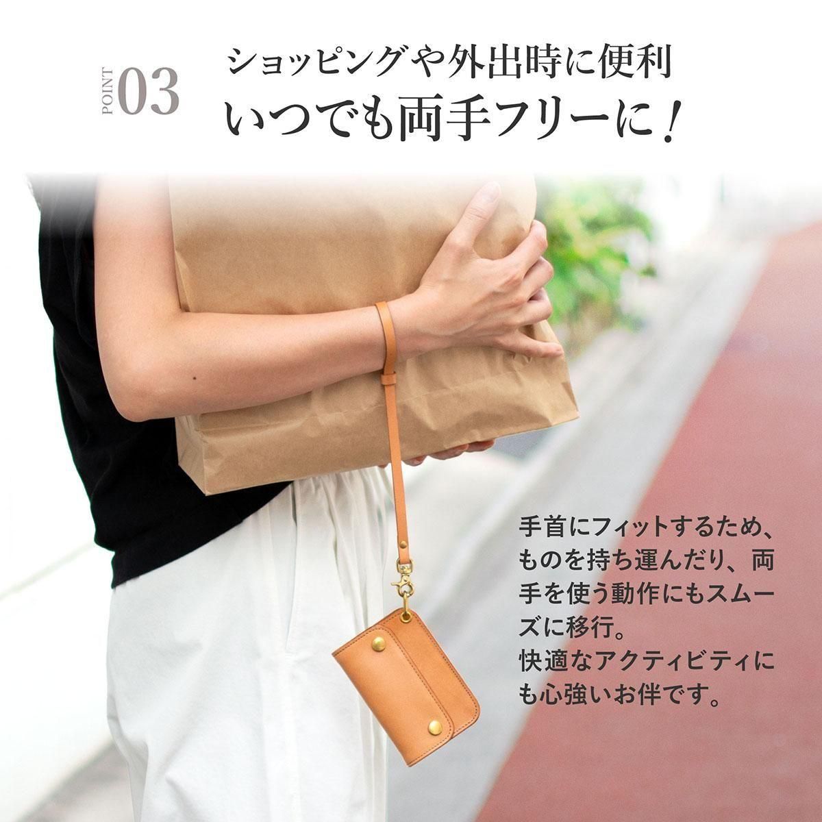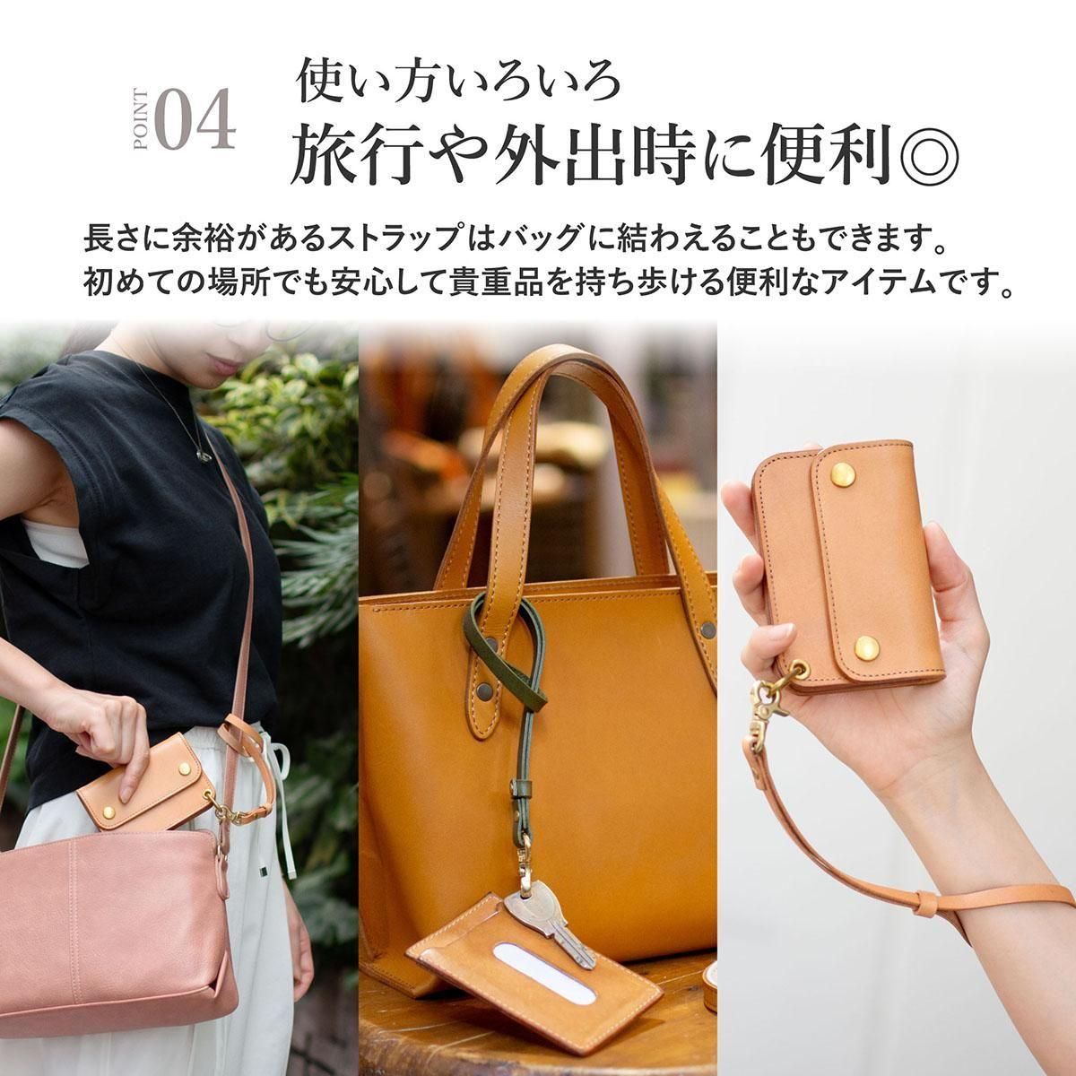 上質な本革を贅沢に使用したこのストラップは、日常にさりげない高級感と落下防止の安心感をプラスしてくれます。