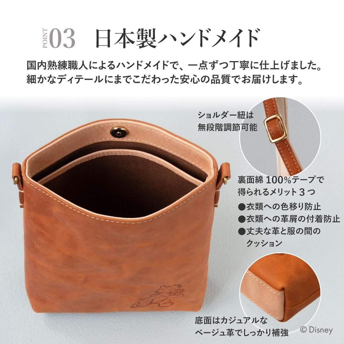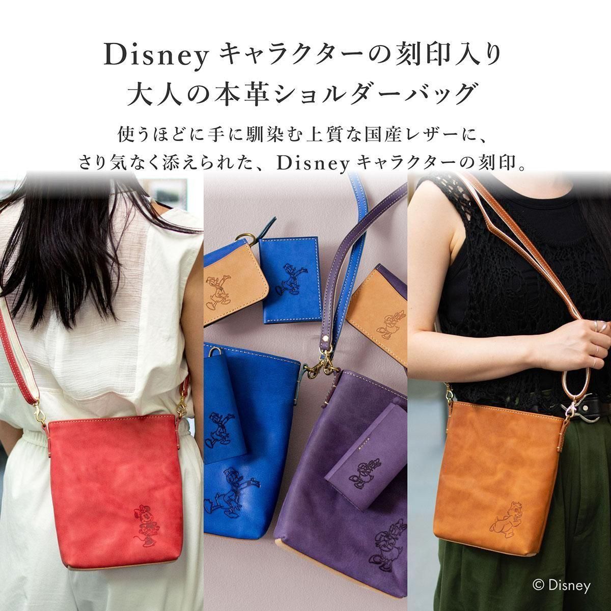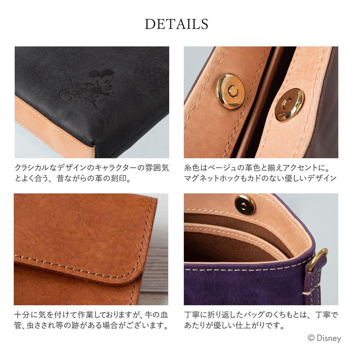 長く年月を積み上げていく、味わい深い本革のショルダーバッグに、大好きなDisneyキャラクターデザインで楽しさをプラス。休日のお出かけが、ちょっと特別になるアイテムです。
