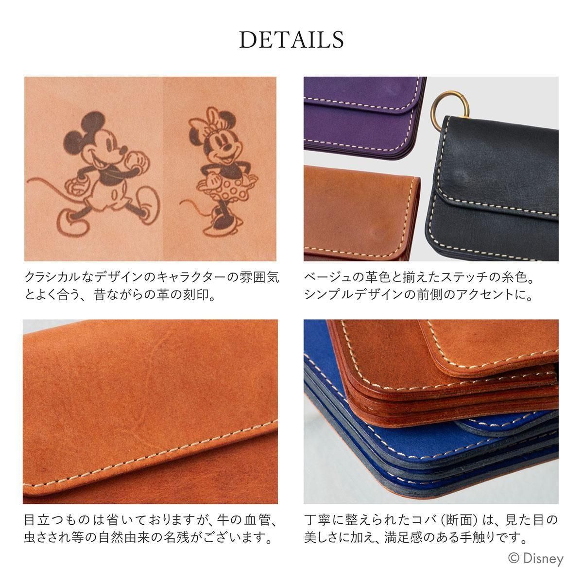 ミッキー&ミニー、チップ&デール、ドナルド&デイジー。おしゃれなカラーのお財布の裏側に、かわいくて味わいのあるキャラクター刻印入り。それぞれのイメージを大切に、日本の職人が心を込めて作りました。